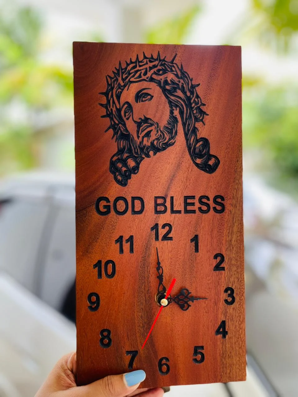 Natural Engraved Jesus Wood Clock